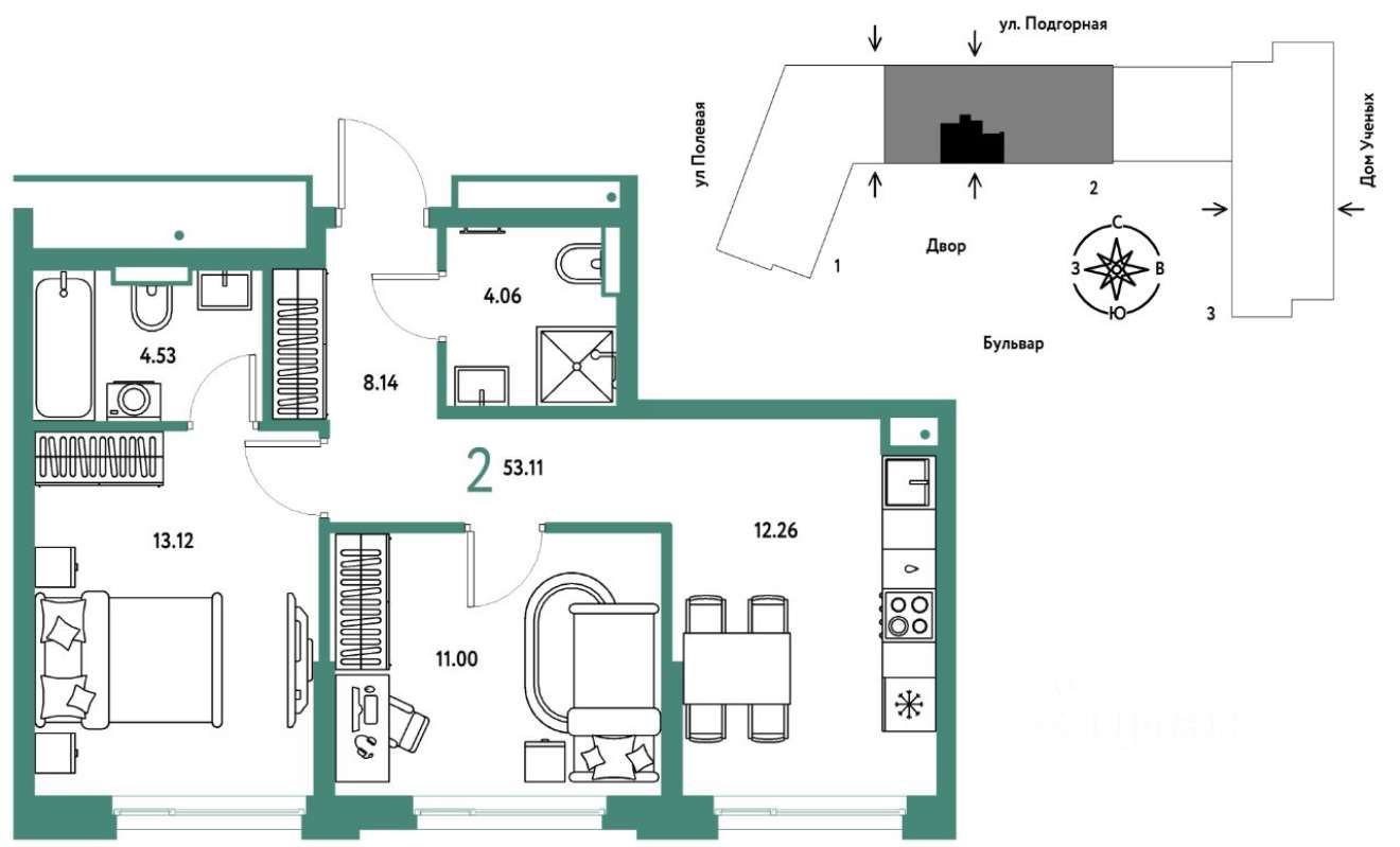 - Транспорт: 5 минут до центра, 8 минут до экопарка